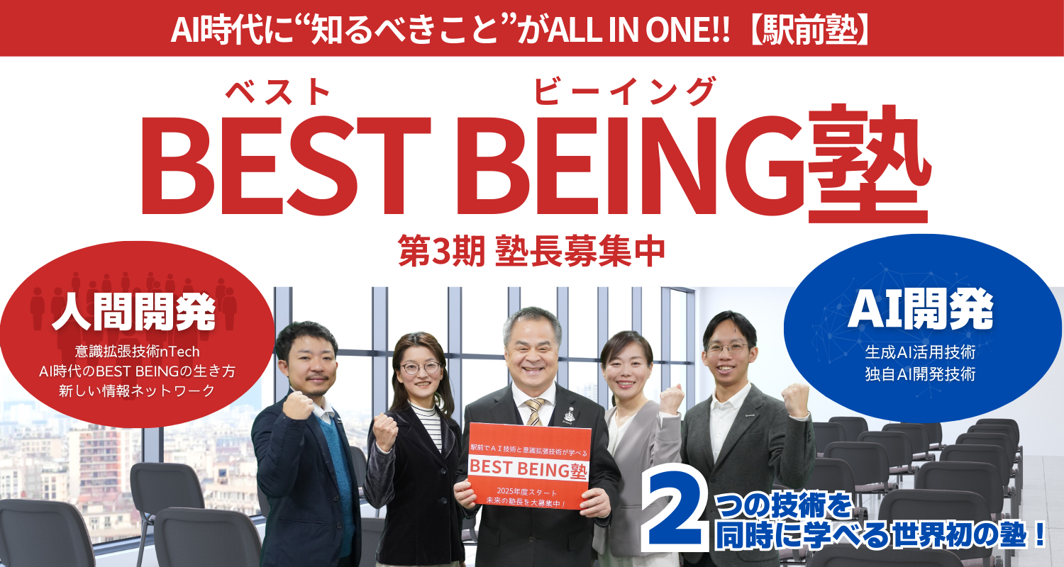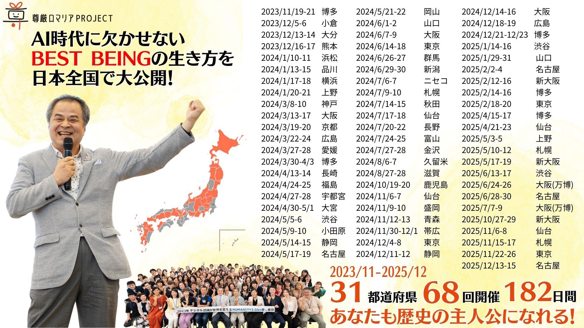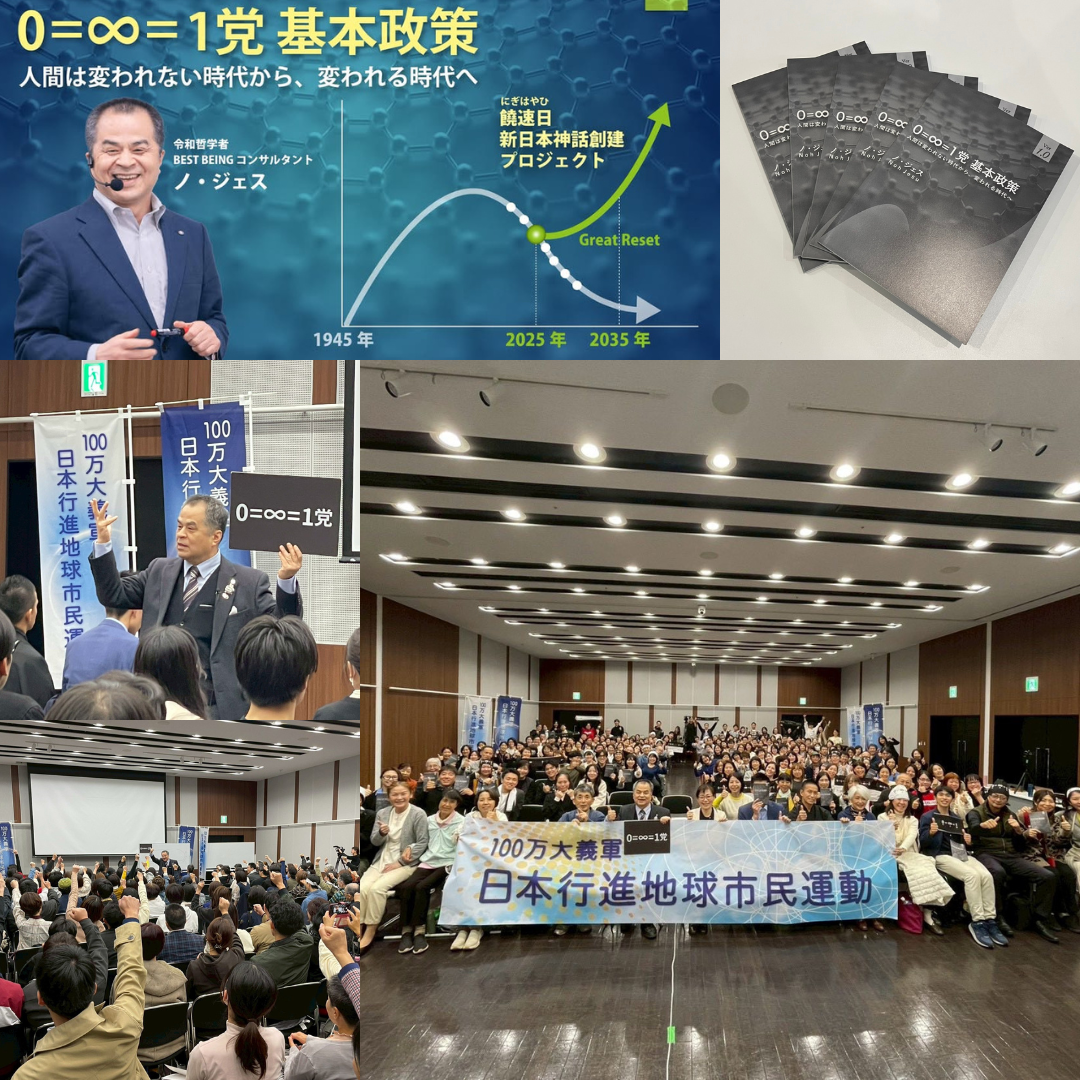 「日本文明こそが、西洋の物質文明を終わらせ、心の尊厳文明をリードする希望である」と確信し、日本を拠点に世界へ発信。2025年の大阪・関西万博での出展や、BEST BEING塾の展開を経て、2026年、人類を脳の牢獄から解放し、尊厳ある政治を実現するための世界政党「0=∞=1党」を始動。